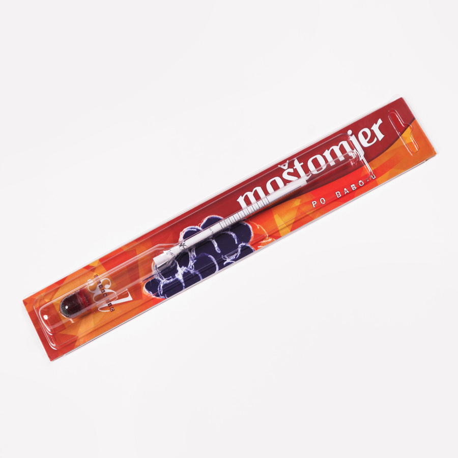 Pomoću Moštomjera s termometrom praktično i točno mjerimo temperaturu tekućine pri samom mjerenju količine šećera u moštu.